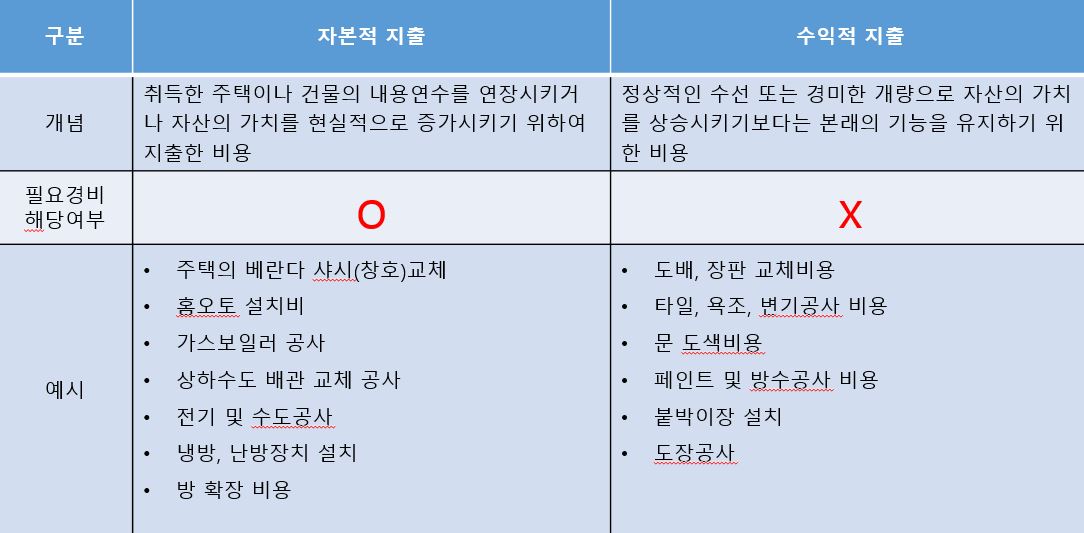 4. 양도세에서 필요 경비로 인정 안 되는 항목(수익적지출)