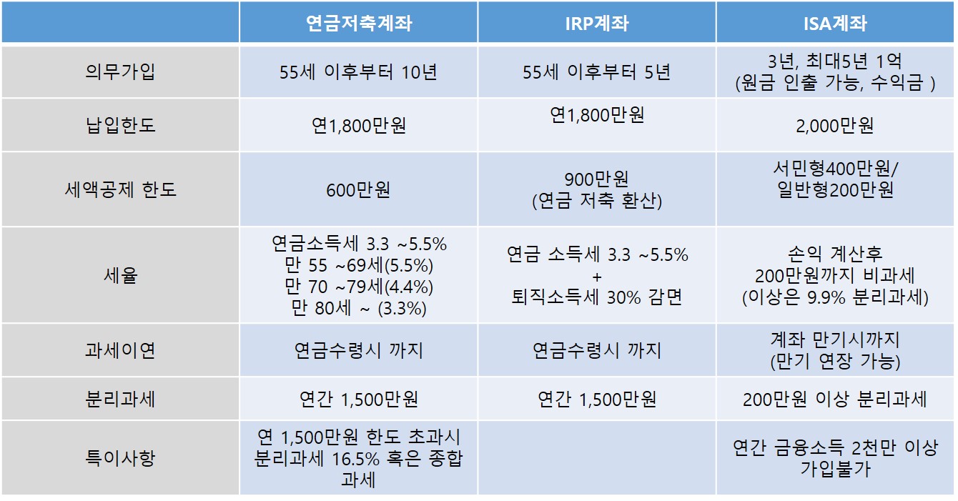 1. 연금저축 계좌와 IRP 계좌 장단점