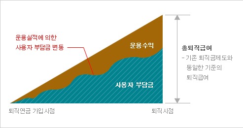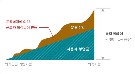 근로자가 퇴직할 때 받을 퇴직급여의 수준이 사전에 결정되며, 기업의 부담금은 적립금의 운용실적에 따라 달라지는 제도입니다.